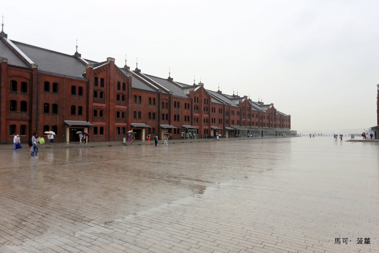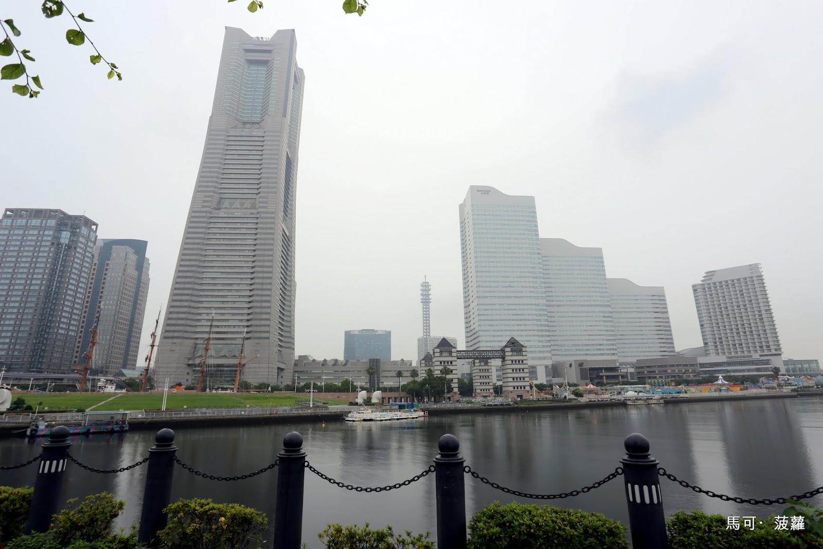 在這條橫過水面的步道上可以用挺好的角度欣賞一下港未來 21 區域的天際線,可惜老天爺不太給面子,雨仍舊是滴滴答答下個不停,只得讓我一邊閃著雨水一邊試圖捕捉一下這座先進都市的門面,對於東京來說,橫濱會比較像是基隆與臺北的相對關係,但在臺灣似乎還沒看到能夠這麼充分展現港灣特色的都市。