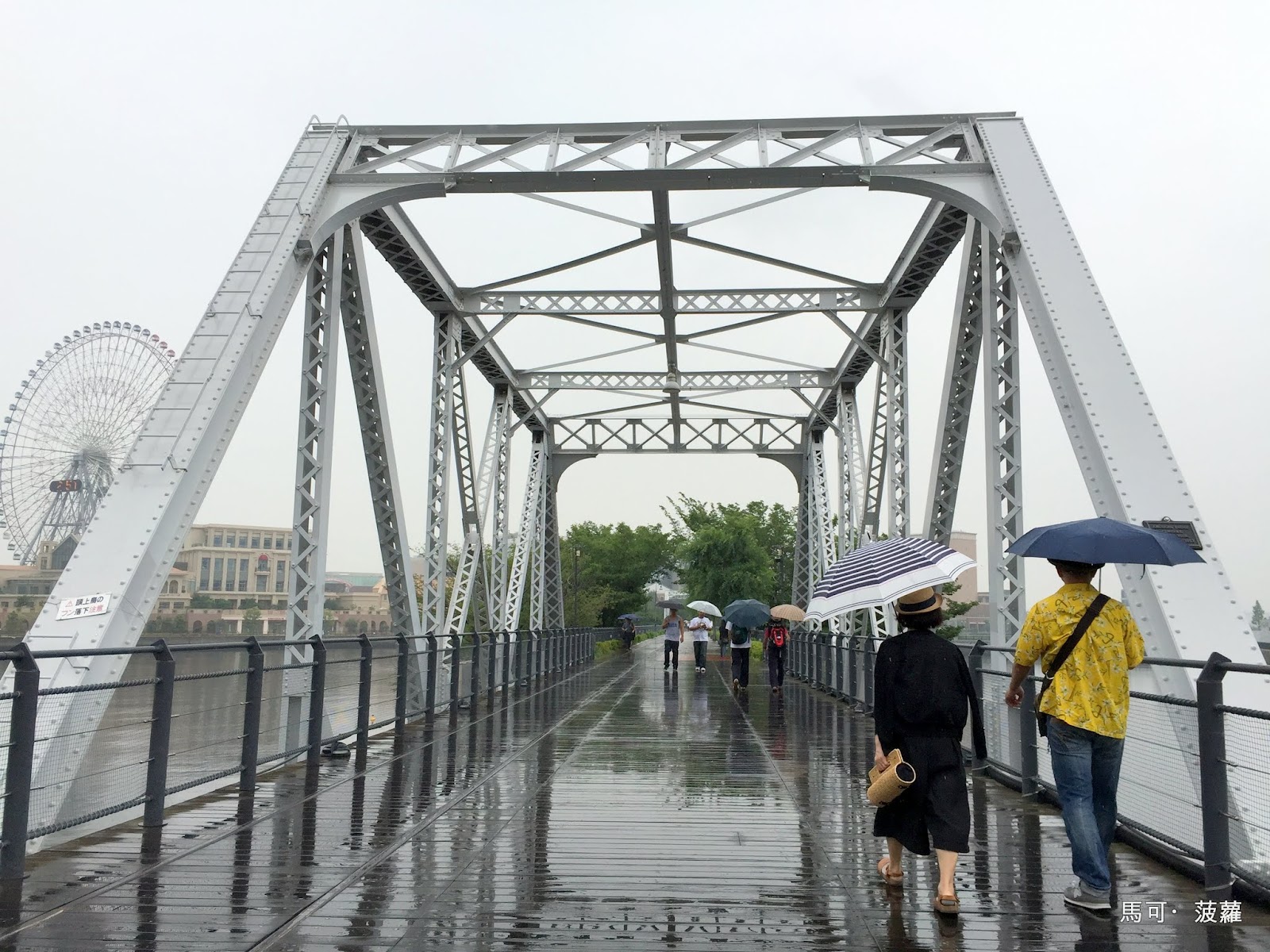 像是我們正在行走的這座白色鐵橋,上頭還有一塊銘牌,上頭寫著「AMERICAN BRIDGE COMPANY OF NEW YORK, U.S.A. 1907」的字樣,可能就是在訴說這座白色拱橋的身世吧,而在同一年,我們臺灣的打狗驛(今高雄港站)到大樹九曲堂的路線也在同時正式開通,100 多年後,日人取名的哈瑪星容貌變化不大,而橫濱已然是一座高度現代化的都市了,「佔據」及「統治」兩者的意義何在我了解,但是一經對照,還是有點令人錯亂矛盾。