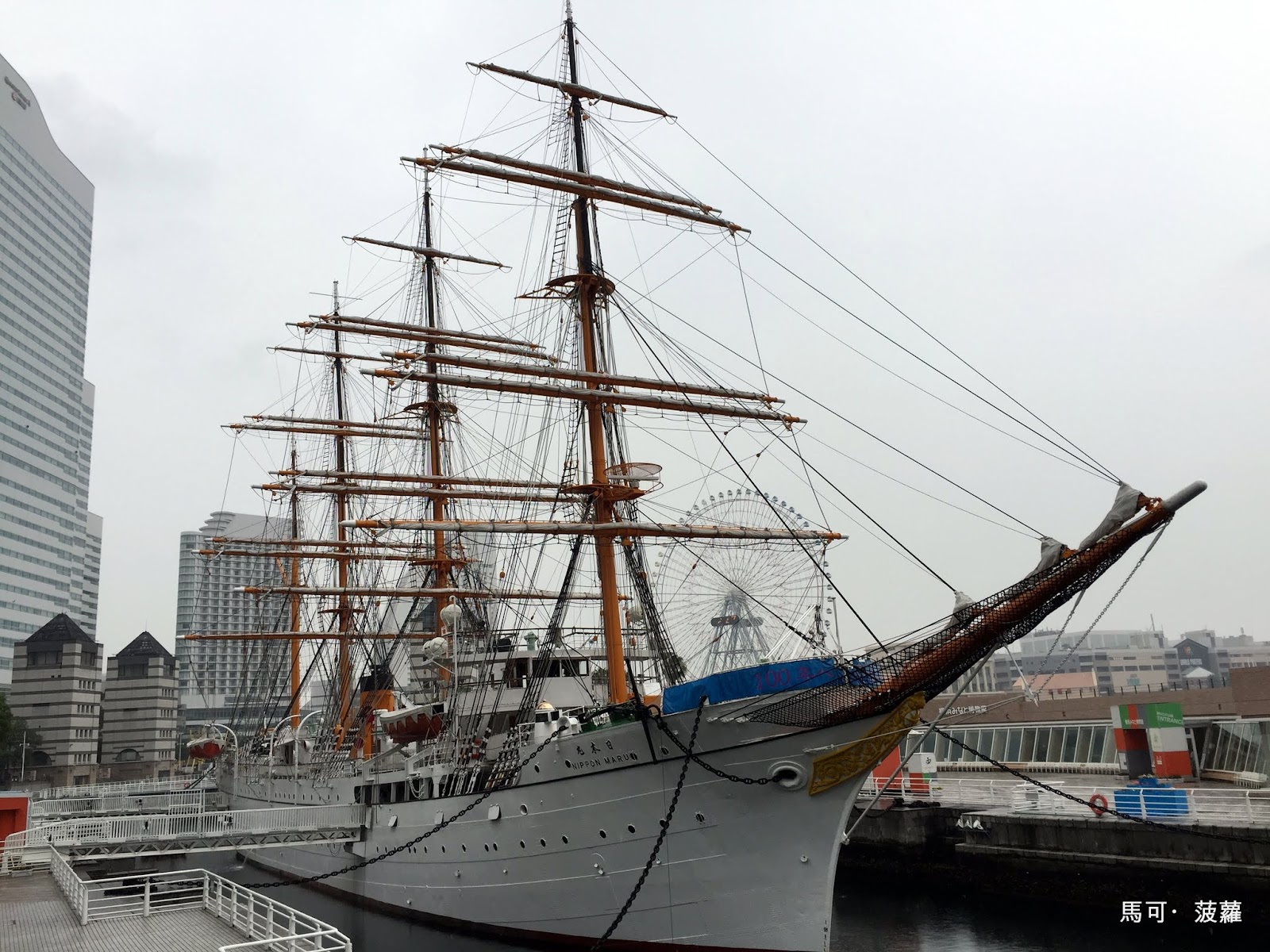 另外就在一旁的港邊,停著一艘白色的帆船,它叫做「日本丸」,是一艘已經退役了的帆船,退役後便一直停泊於這個「日本丸紀念公園」內供人瞻仰,但也不是因此完完全全擺在那邊讓鴿子在上頭大便的而已,船上的設備跟機械等等的都還可以提供給實習船員們練習操作,但是要像電影《超級戰艦》 裡頭那樣還可以開出海去跟外星人對尬就有點太勉強了。