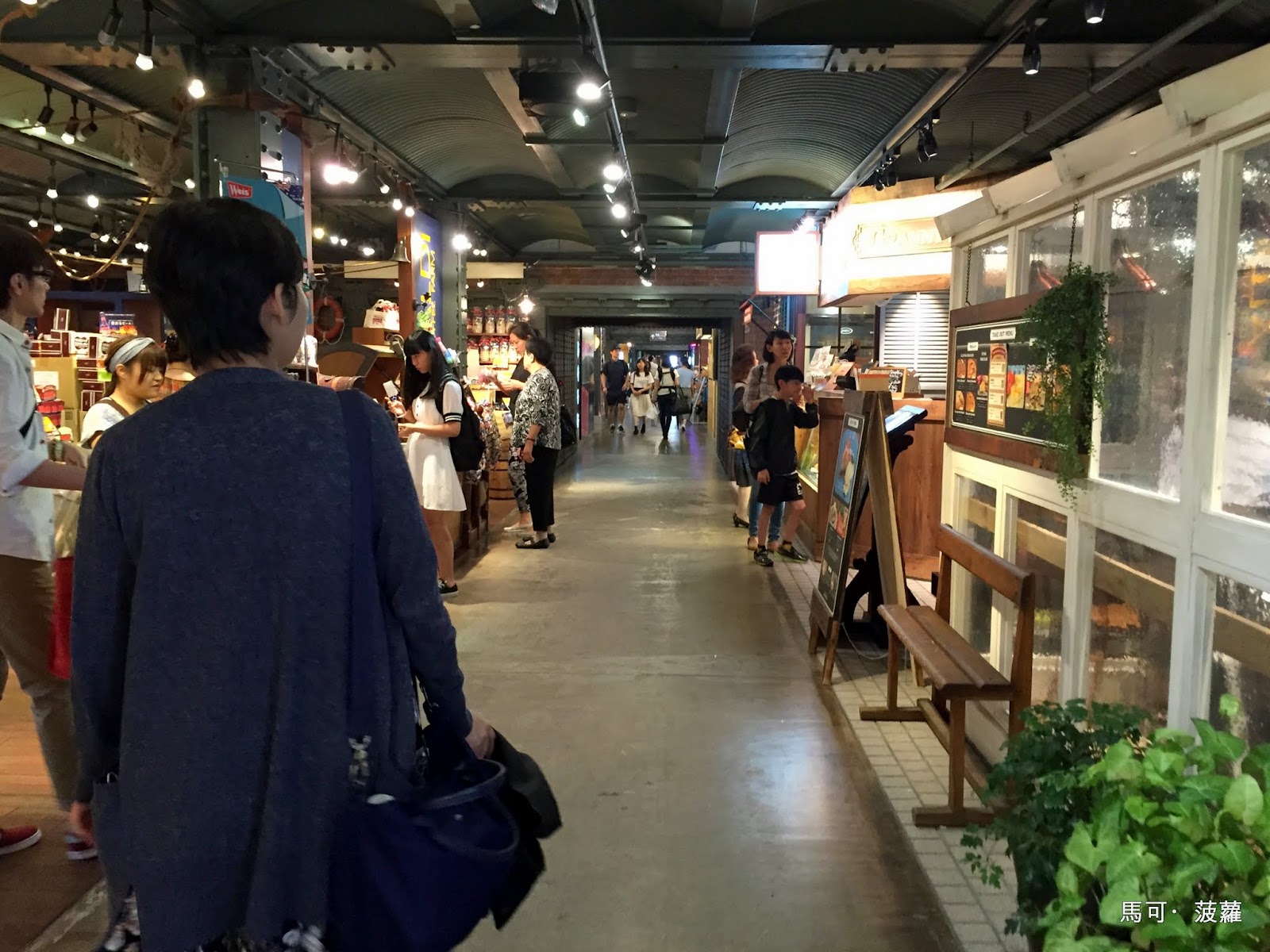走進一號倉庫內,中央走道的兩旁紛陳的是一間又一間的小商店或餐飲店,樓上還有些展演空間,類似這樣的下雨天,毋需在外頭淋雨也可以晃上個老半天,雨天時的駁二就比較麻煩點了,雖然可逛性絕對不輸這兒,甚至還有誠品進駐了,但很明顯的一下雨遊客就是少啊~