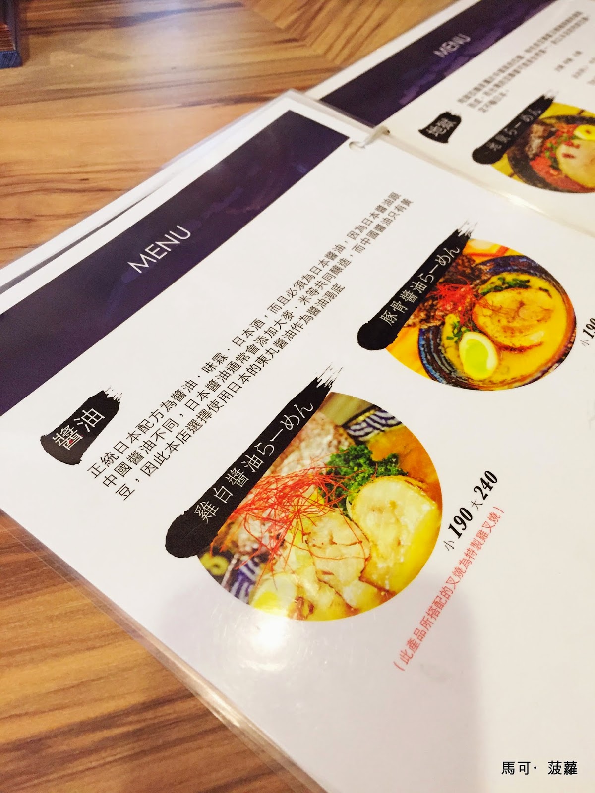 爽朗的一個前滾翻就竄進了店內,已經早有大批民眾在裡面用餐了,隨即被店員帶上座位,店內的座位則是一律面對著店家的工作區域排排坐著,裝潢還挺有一回事的,少說也比那一年我們半夜在京都車站外頭找到的那間叫做「惠比朱」 拉麵店豪華多了,也比較乾淨,最重要的是絕對不會有煙味繚繞,那麼,就來點個餐吧,少爺!請把菜牌給我,謝謝。