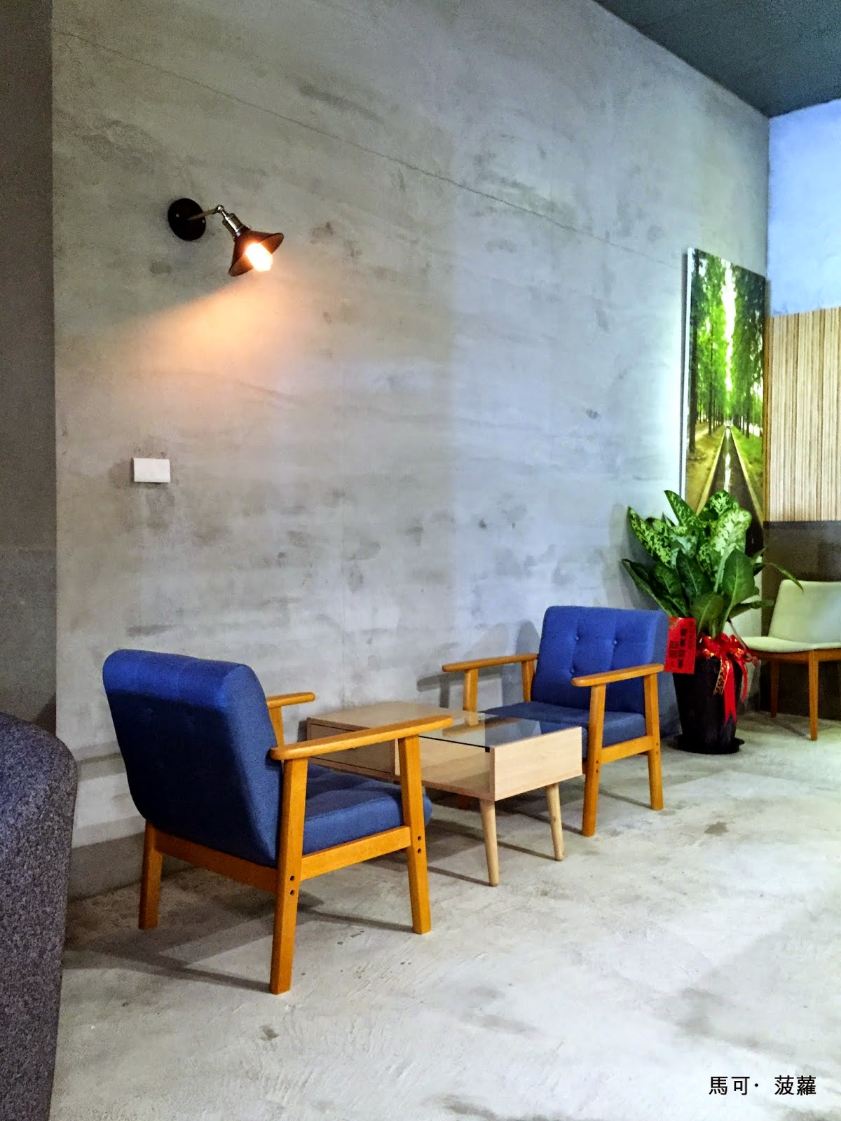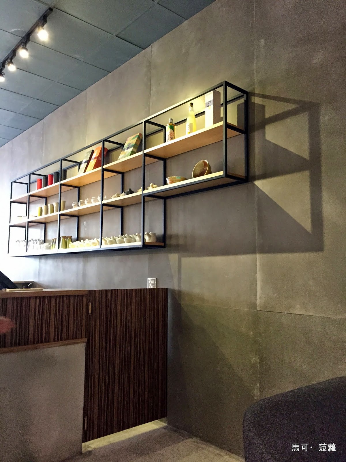 店家將原本佔地面積太過於龐大的廁所及廚房全都給拆了,改為較小的廚房及後推的廁所,所以餘下的空間全變為了用餐空間,以及在左側牆面的簡約吧台,牆面也塗上水泥做成類似清水模的質感,相較之下,突然覺得我們店裏簡直像工寮一樣...