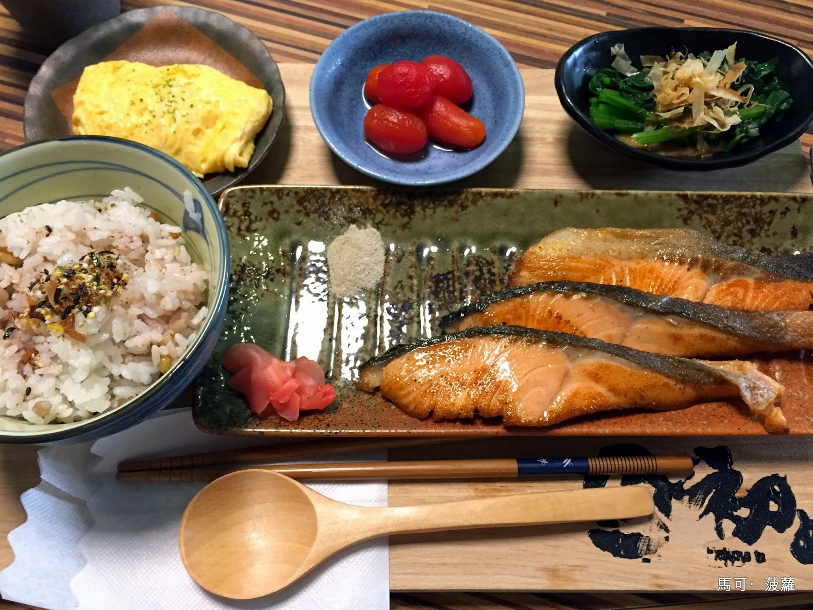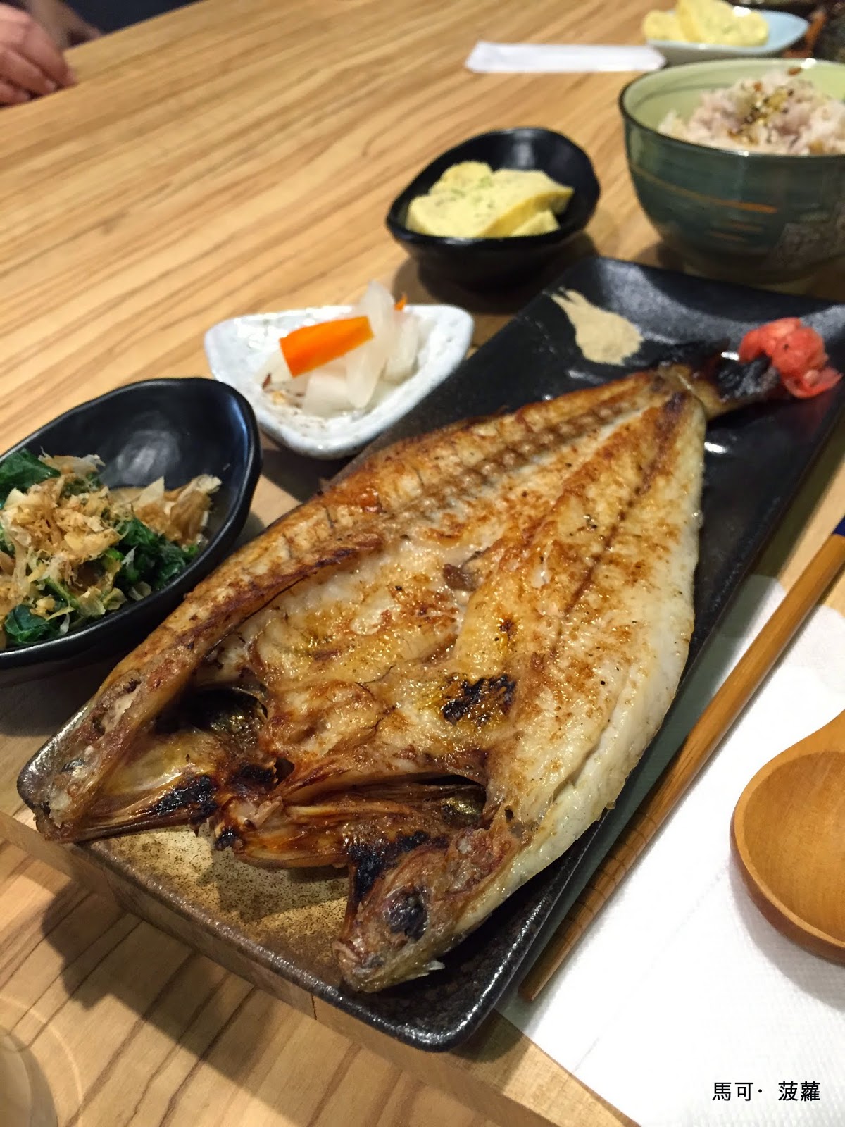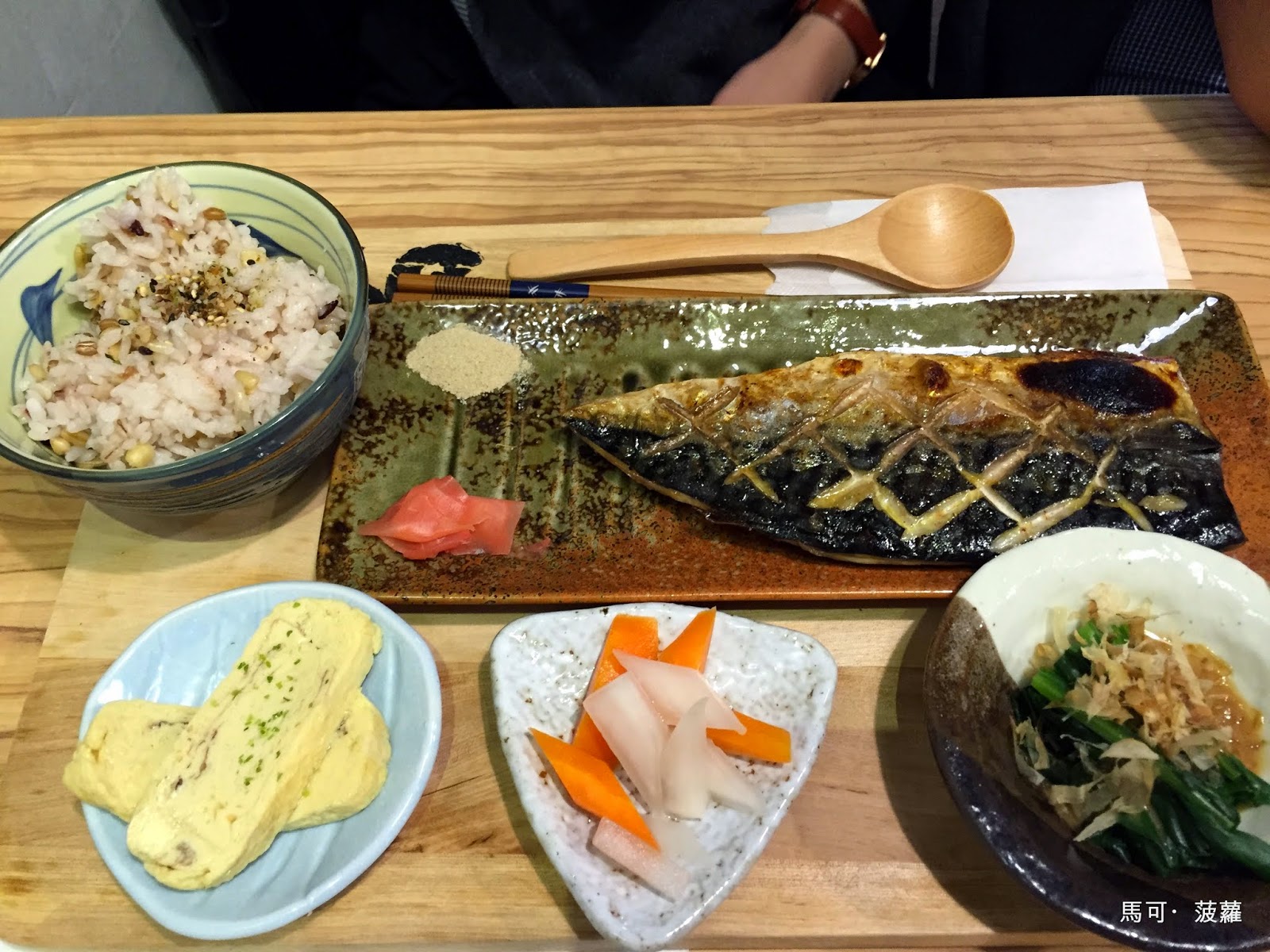 既然是日式的早午餐,那麼我們常在日本早餐時吃到的烤魚,這裡當然也不會少,烤鯖魚配上的是玉子燒、醃蘿蔔、菠菜,米飯則也是五穀米,烤魚還可沾些一旁所附的柚子胡椒鹽入口,鯖魚本身味道濃郁,油脂也豐富,柚子胡椒則恰如其分的減少了許多油膩感。