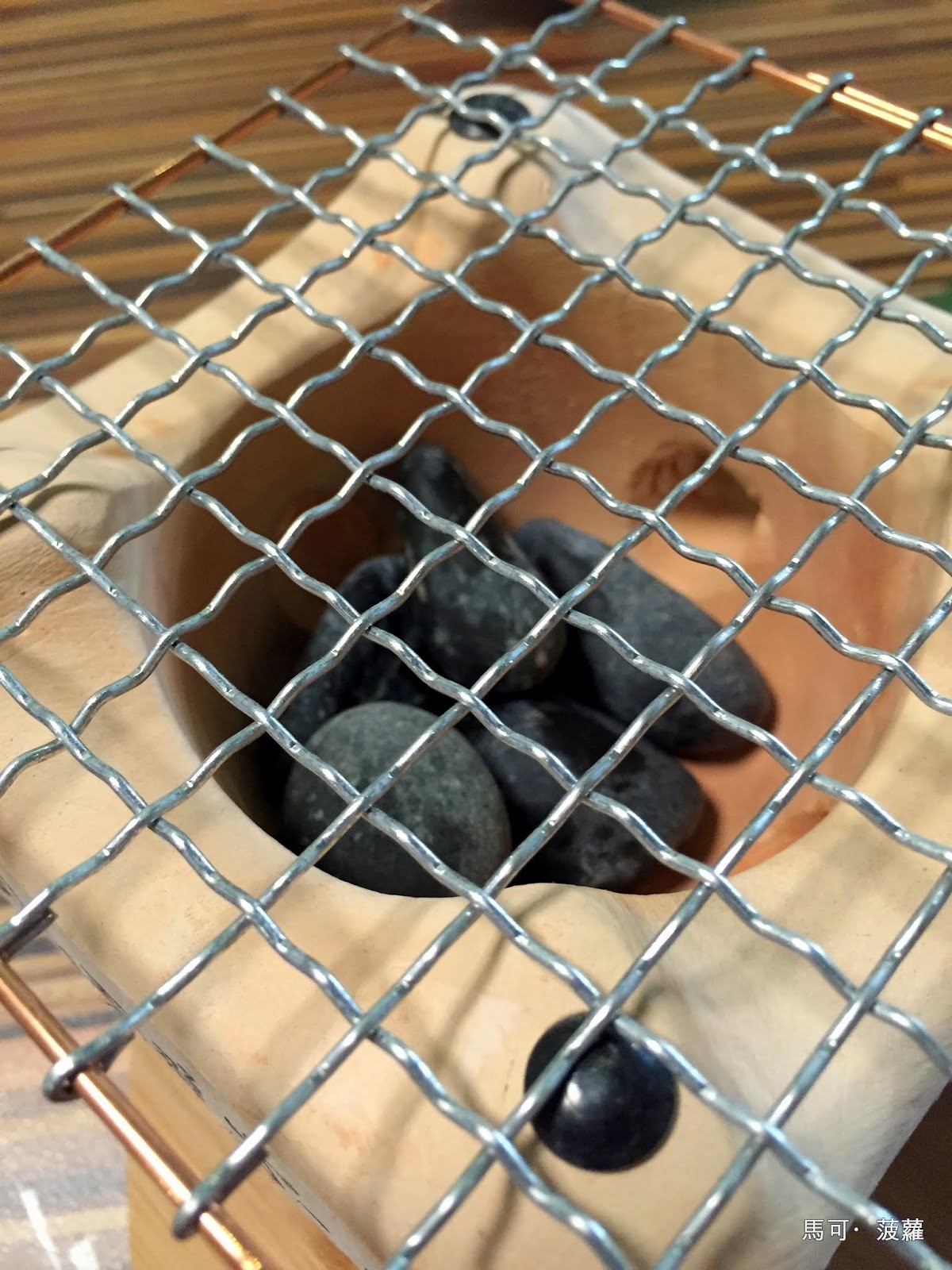 呵當然不是,要不然這飯糰說不定你拍完照還沒打完卡就起火燃燒了,烤爐裡擺的則是一些烤暖了的石頭,用意是讓上頭的飯糰不至於太快失去溫度吧,設想得還真周到,這方法是取材於石頭火鍋還是暖暖包的概念嗎?
