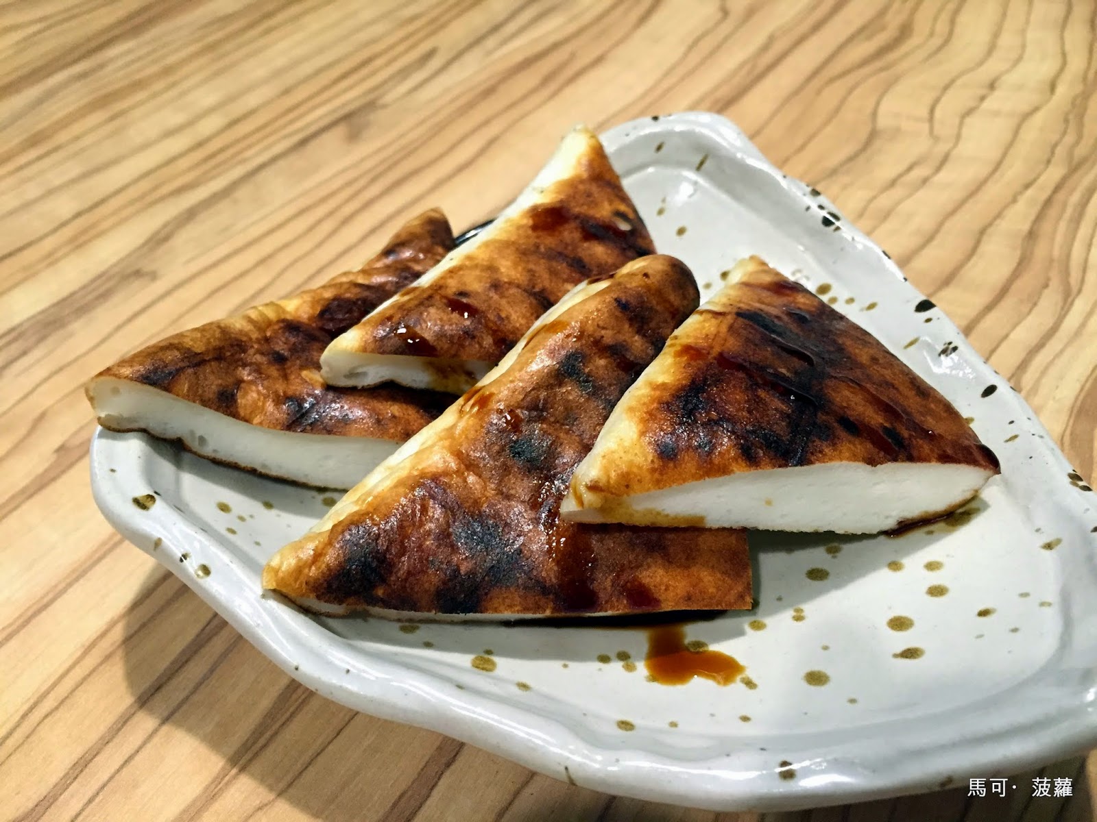 酒食裡有些產品還不錯,例如這道「烤鱈魚豆腐」,甜鹹滋味的醬汁經由炙燒而附著在表面, 內裡則還保有鱈魚豆腐的綿密口感,咬起來 QQ 的,有彈性,趁著大夥兒聊不注意時,被俺掃了個精光。