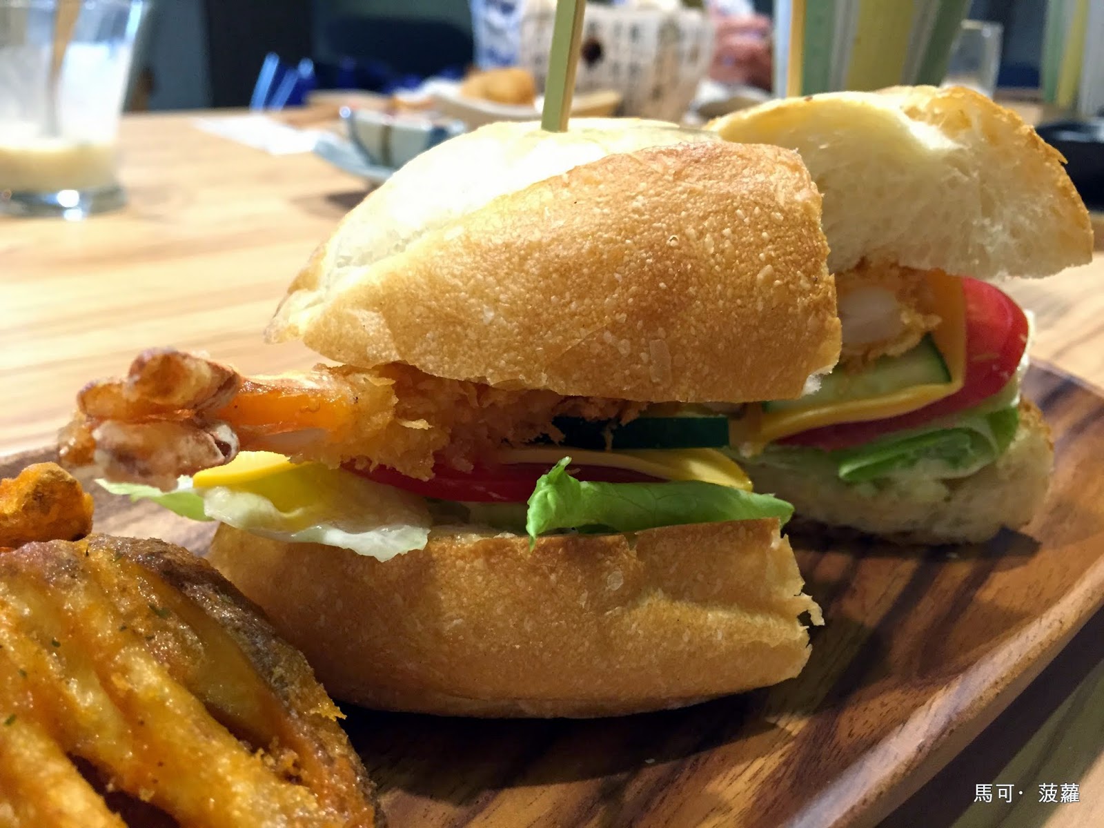 整體來說嘛~炸蝦的麵衣不會過分的多,也沒有因為放太久而失掉的現象,所以吃起來只要有咬到炸蝦的話都是酥脆的,蝦肉 Q 彈,底下的生菜也讓口感不會太過於油膩,但要是那片起司能夠再豪邁一點,鋪在生菜上感覺快要融化了一樣的話那就更完美了。
