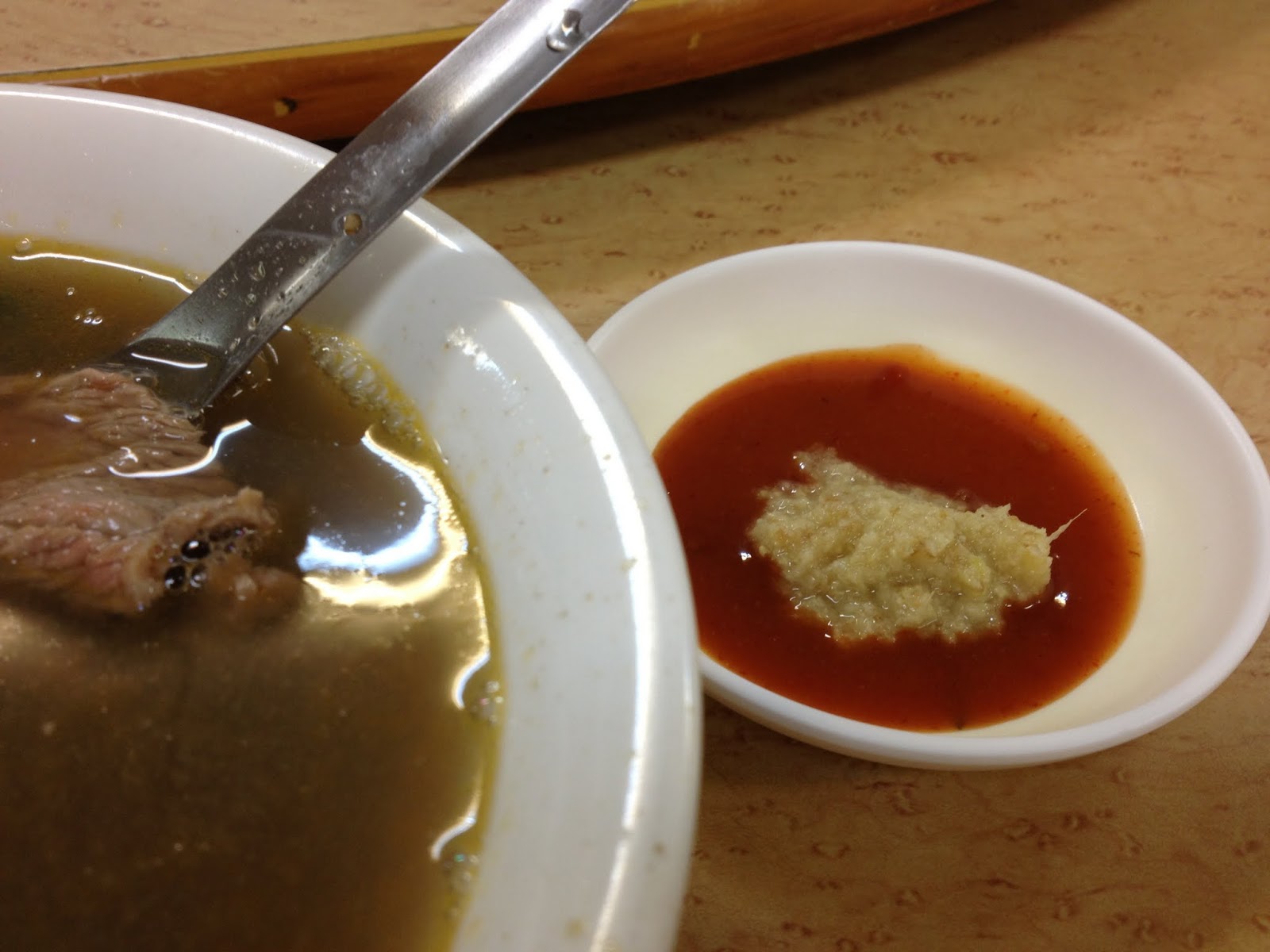 店家隨附的醬料也是個經典,這如今已是潮州牛肉湯店必備的了,甜辣醬加上大量薑末,搭配湯裡的牛肉片非常對味,小時候,光是這疊醬料已足夠先讓我們幹掉一碗白飯了。